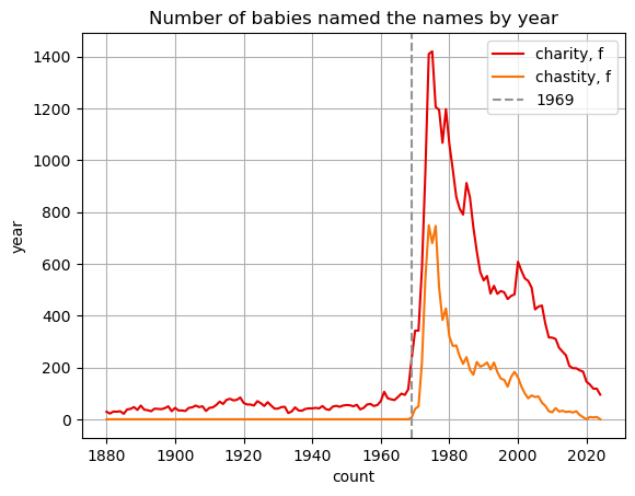 Here, I will show how I figured out why the name Charity began increasing in 1969, a question that stumped me for months.